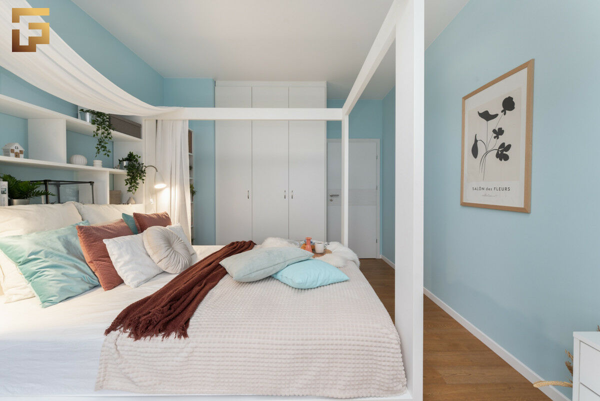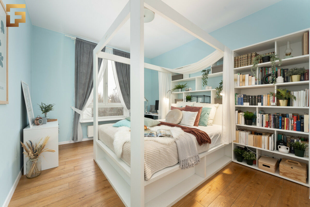 Pierwsza, główna, imponuje powierzchnią 16,00 m² — z powodzeniem pełni rolę przestrzeni sypialnianej, gabinetowej oraz garderobianej jednocześnie.
