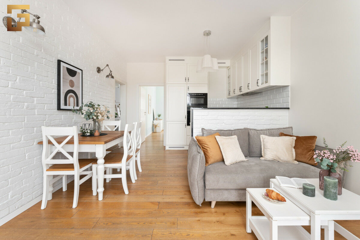 W większości pomieszczeń znajduje się również drewniana podłoga, która nadaje wnętrzu ciepła, cechuje się trwałością i można ją w przyszłości odnawiać, wydłużając jej żywotność na wiele lat.