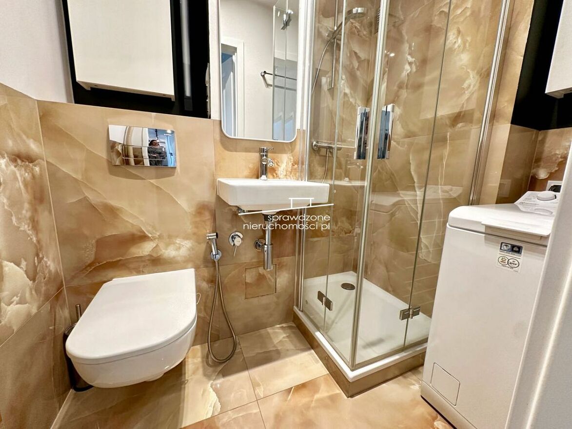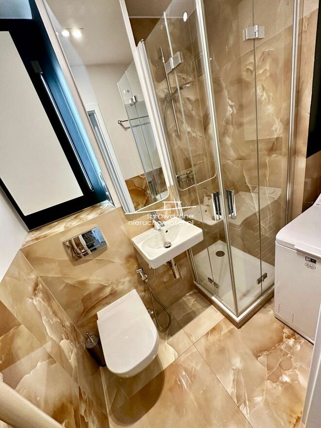 - ŁAZIENKA - z kabiną prysznicową, WC, bidetką, umywalką i funkcjonalnymi szafkami w zabudowie, pralka.