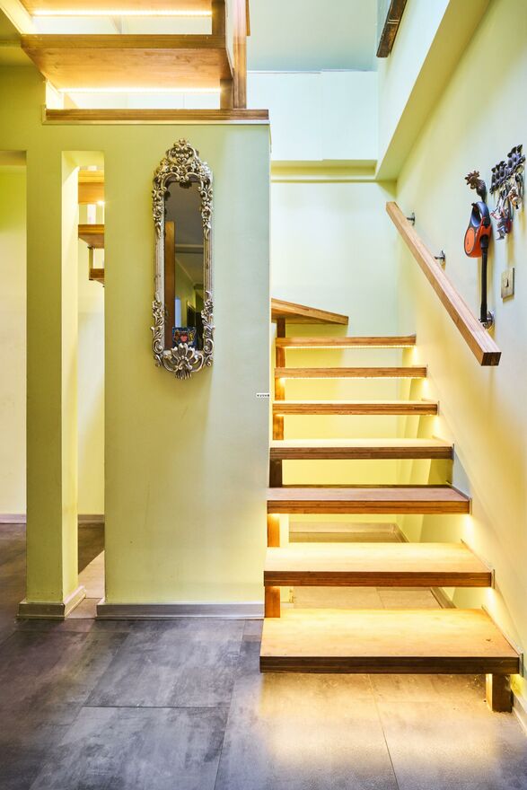 Na drugi poziom prowadzą eleganckie schody dębowe.