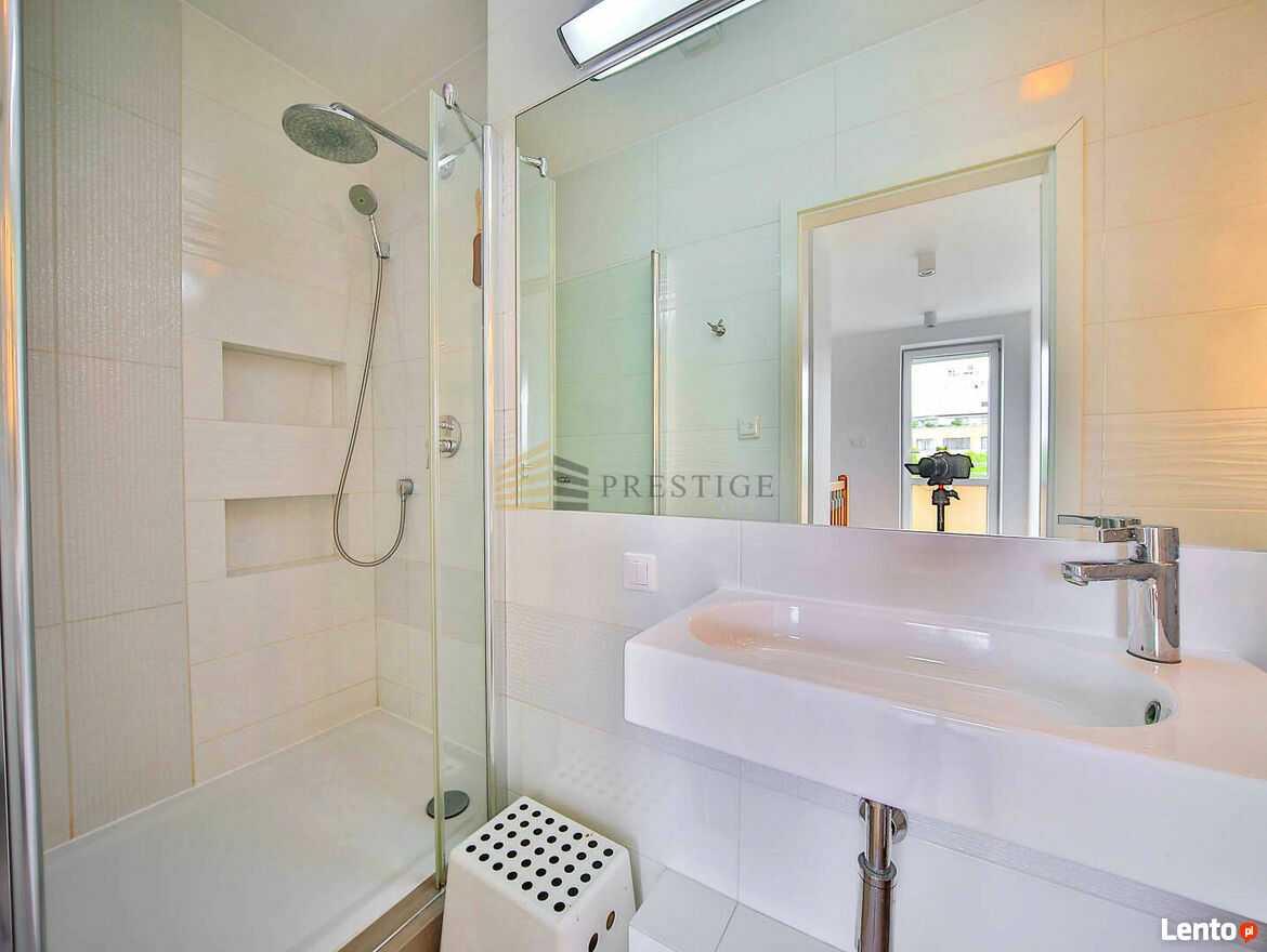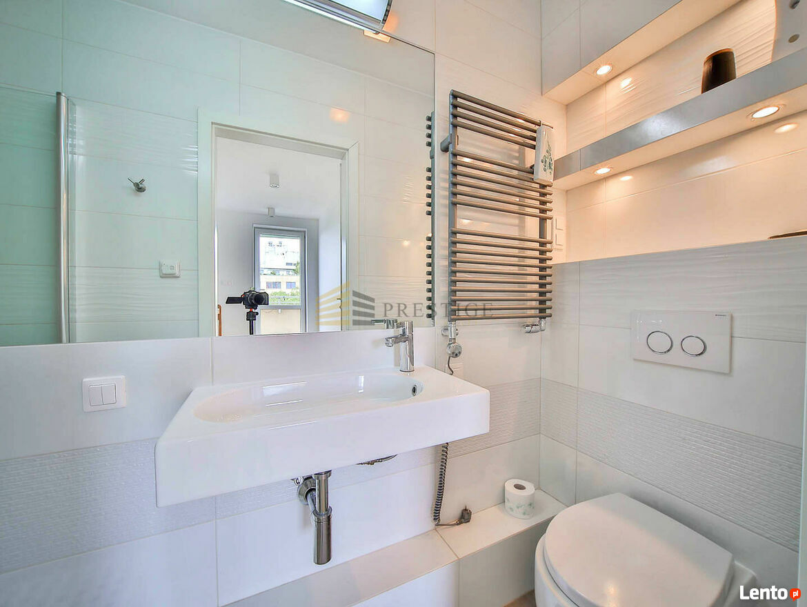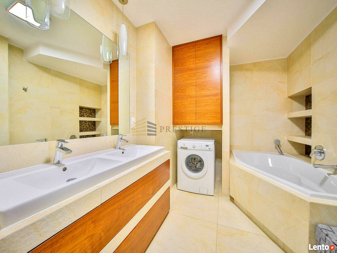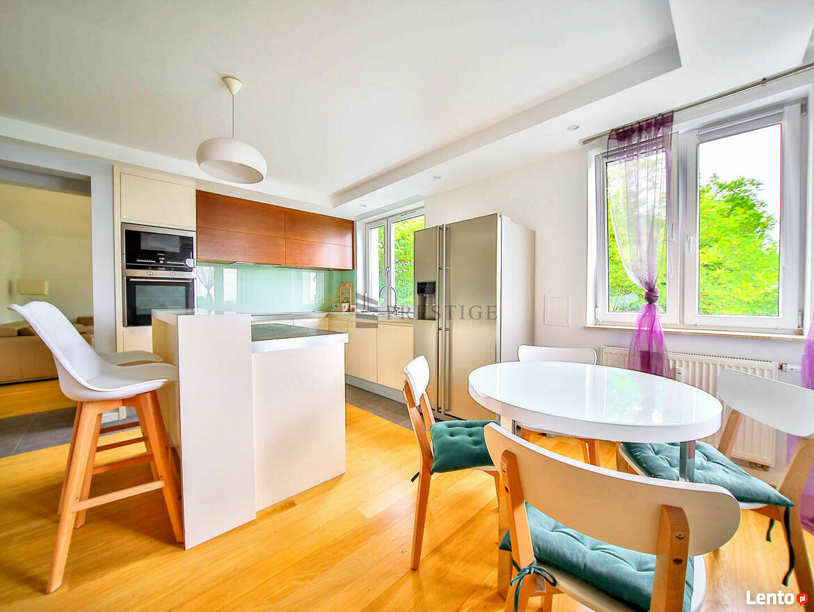Biuro nieruchomości Prestige przedstawia Państwu na wynajem w pełni umeblowane, czteropokojowe mieszkanie o powierzchni 111 m, usytuowane na czwartym piętrze budynku z windą.Dolny poziom: