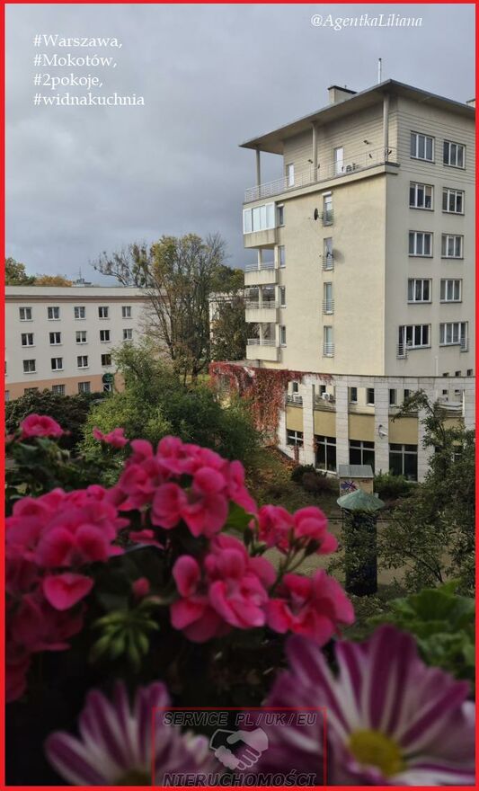 Mieszkanie jest tak usytuowane, że pomimo położenia w samym sercu miasta jest w nim cichutko a na ulicach spokojnie, otoczone mnóstwem zieleni. blisko do parku, na #PoleMokotowskie, wokół tereny rekreacyjne, działki, przedszkola, szkoły, uczelnie, mokotowski dom kultury, przychodnia zdrowia, szpital MSW, kościół - wszystko w zasięgu kilku minut spacerem