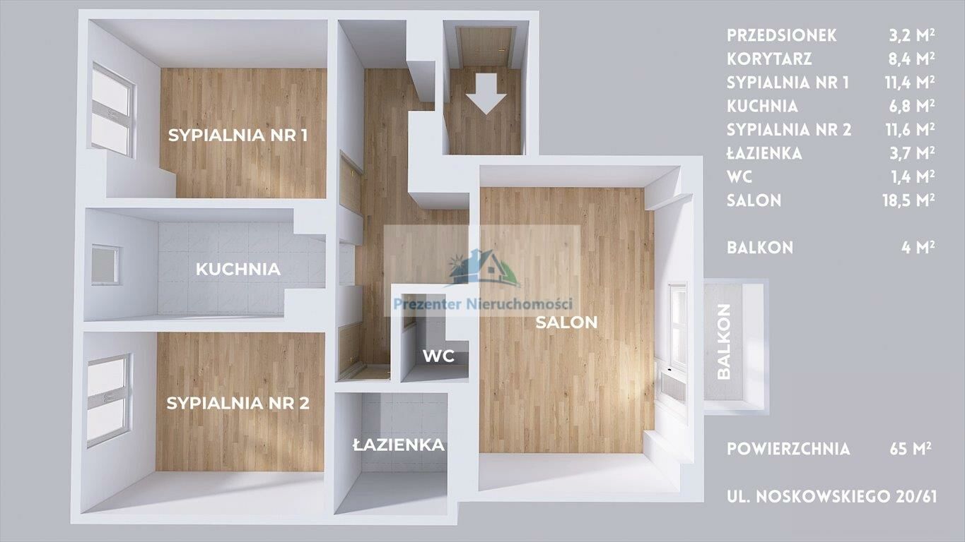 Rozkładowe przestronne widne 3-pokojowe mieszkanie o powierzchni 65m2.