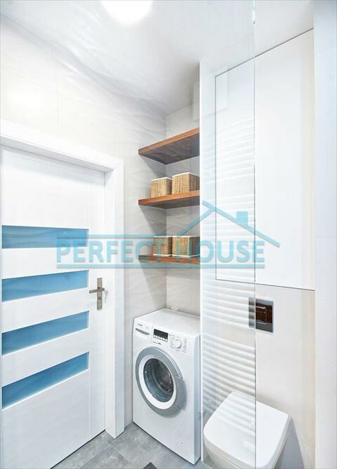 Łazienka: wygodny prysznic 70cm x 180cm, pralka, półki i szafki