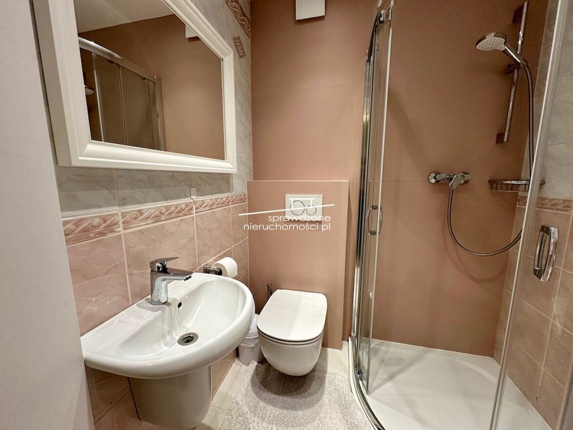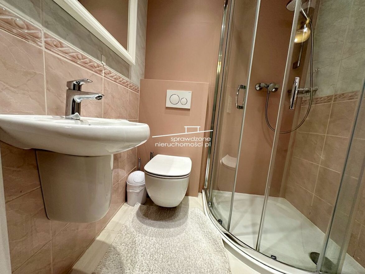 Łazienka - po remoncie - a mniej: pralka marki BOSH, kabina prysznicowa.
