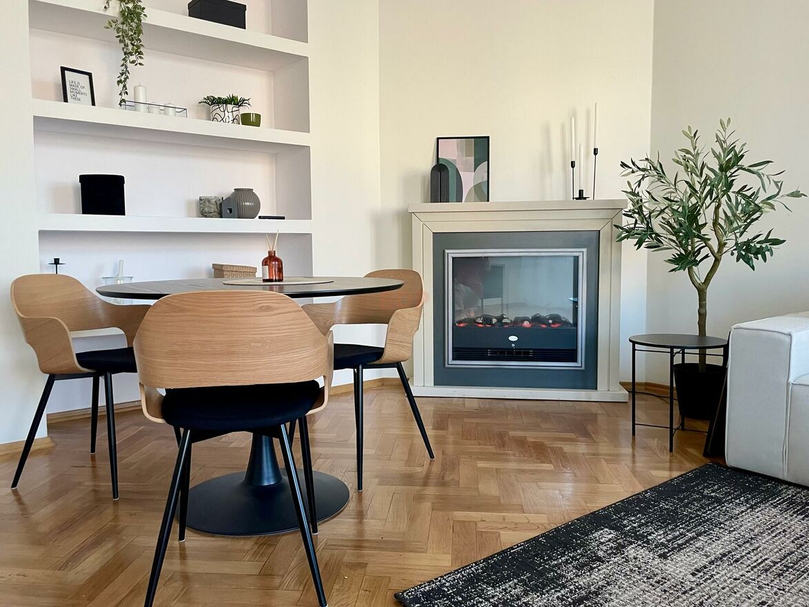 - salon, 30 m2 z balkonem i kominkiem elektrycznym