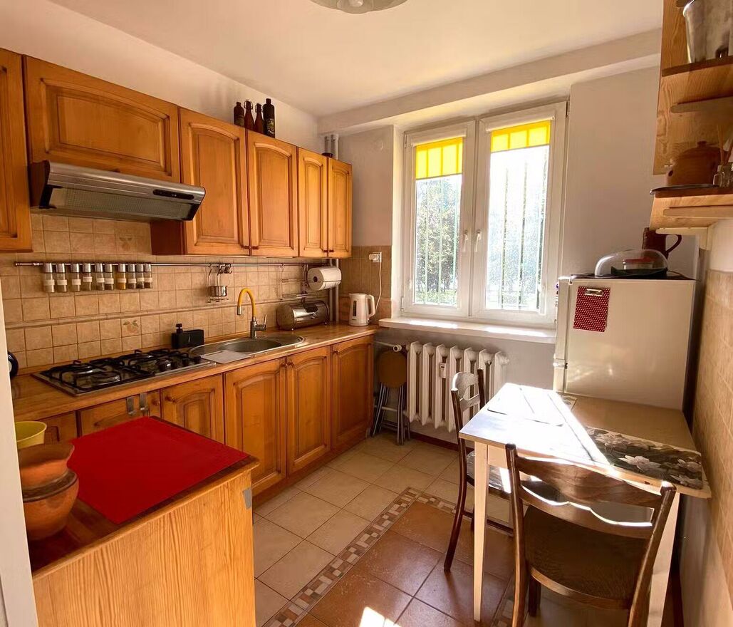 I am pleased to present a bright and spacious studio apartment located in the heart of Gocław. The property consists of a living room, a generously sized separate kitchen, a bathroom with a bathtub, and an entrance hall. An additional advantage is a south-facing loggia overlooking green areas. The apartment is very well laid out, offering excellent potential for interior design and rearrangement. Thanks to its unique floor plan, the kitchen can be relocated and converted into a separate bedroom.