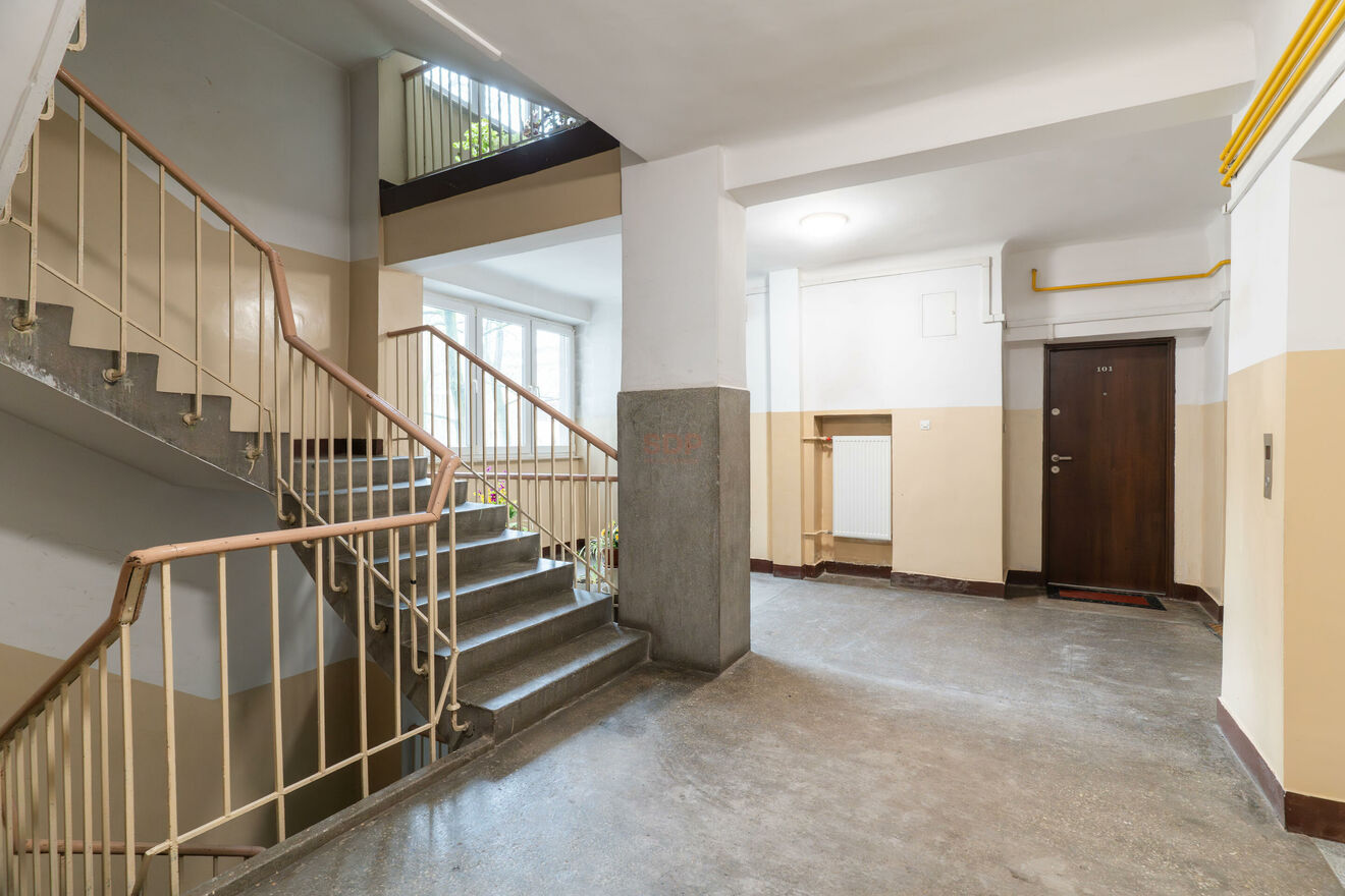 Mam przyjemność zaprezentować Państwu wyjątkowe mieszkanie w okolicy placu Hallera na Nowej Pradze. Lokal położony jest na pierwszym piętrze, siedmiopiętrowego budynku z cegły z lat 60. Kamienicą administruje wspólnota mieszkaniowa, która to na bieżąco dba o wszystkie modernizacje i naprawy. Budynek ma wymienione piony CO oraz wodno kanalizacyjne, nową windę oraz odświeżone klatki. Przed budynkiem jest zielone podwórko oraz zadaszone wiaty na rowery.