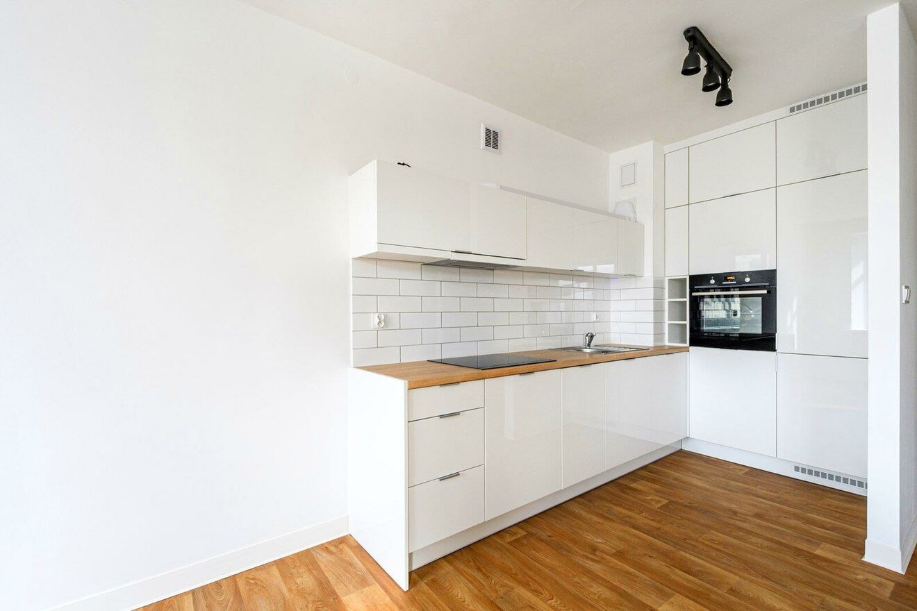 Funkcjonalna kawalerka składa się z dużego pokoju głównego z aneksem kuchennym (ok. 24 m2), przedpokoju i łazienki. Aneks kuchenny posiada zabudowę, w której umieszczono sprzęt AGD i szafki kuchenne. Kuchnia wyposażona jest w płytę indukcyjną, lodówkę z oddzielnym zamrażalnikiem, piekarnik, zmywarkę i pralkę. W mieszkaniu zainstalowano szafę wnękową.