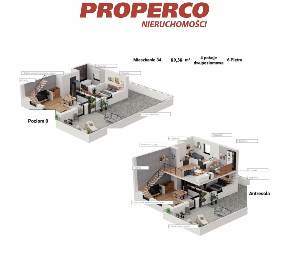 Przestronne, widne pomieszczenia, wysokie sufity (nawet na ok. 5 m) oraz antresole tworzą wyjątkowy klimat loftowych wnętrz. Mieszkanie oferowane jest w standardzie deweloperskim .