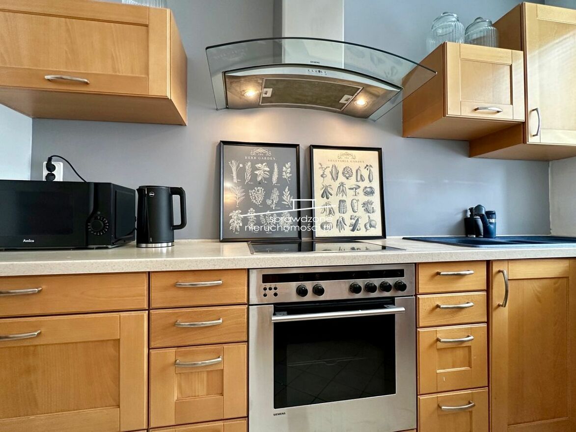 - Stylowa kuchnia w pełni umeblowana, lodówka, zmywarka, okap, doświetlenie w podsufitkach. Płyta indukcyjna i piekarnik. Połączona szerokim przejściem z salonem.