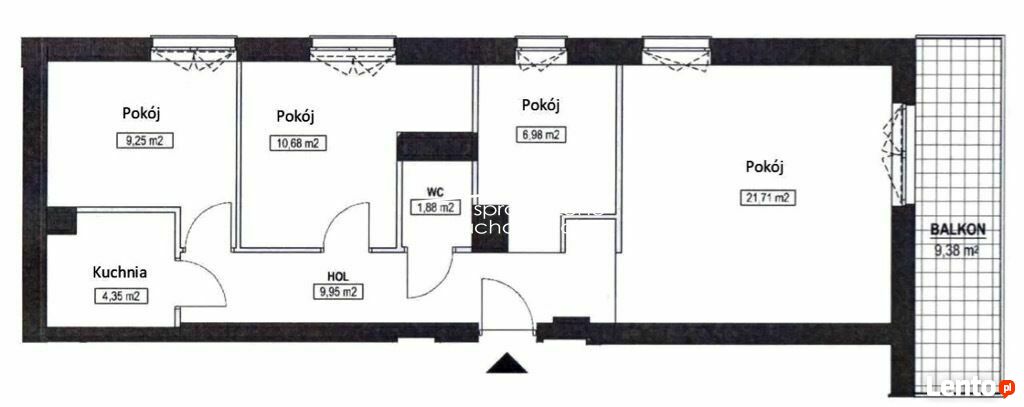 - czterech niezależnych pokoi, z największego pomieszczenia - wyjście na duży taras z widokiem na zielony dziedziniec,
