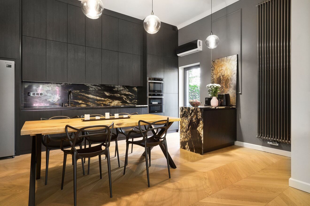 Budzisz się w przestrzeni, w której czujesz powietrze, światło i przestrzeń. Masz 3,5 m wysokości, a wokół Ciebie drewno, granit, światło i cisza. Otwierasz drzwi balkonowe i wychodzisz do swojego ogrodu. Czujesz spokój. Pijesz kawę przy stoliku z tego samego brazylijskiego kamienia, co blaty w kuchni.To nie hotel. To nie sen.To Twój dom.