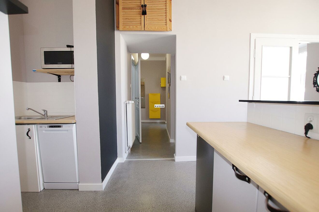 Mieszkanie składa się z salonu, sypialni, kuchni w aneksie, łazienki z kabiną prysznicową z pralką. Mieszkanie bardzo stylowo zaprojektowane, z dbałością o najmniejsze szczegóły. Jest pralka, kuchenka, piekarnik, lodówka. W salonie kanapa, telewizor, szafki pod telewizor, stół i krzesła. W sypialni łóżko, szafa.