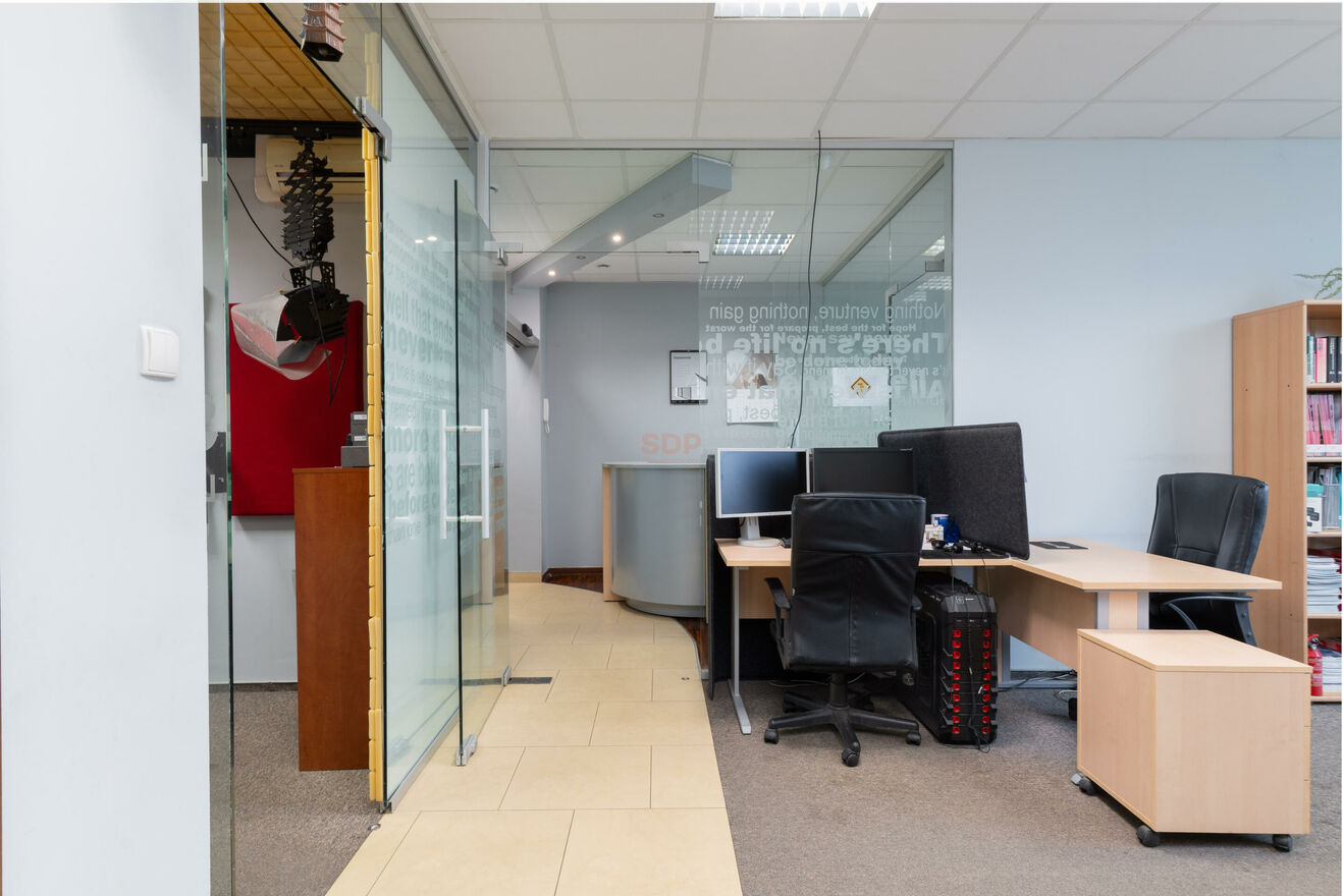 Oferta sprzedaży dotyczy lokalu mieszkalnego użytkowanego jako lokal biurowo- usługowy usytuowanego na 1 piętrze w 11 piętrowym budynku z 2002r, składającego się z 4 pokoi z oknem, jednego pokoju bez okna ( studio nagrań ), kuchni oraz WC. Wejście do lokalu znajduje się wewnątrz w klatce schodowej gdzie znajdują się schody oraz dwie windy. Miejsca parkingowe ogólnodostępne w najbliższej okolicy, istnieje również możliwość wykupienia lub wynajęcia miejsca postojowego od spółdzielni w hali garażowej pod budynkiem. Lokal można przywrócić do funkcji mieszkania 4 pokojowego.
