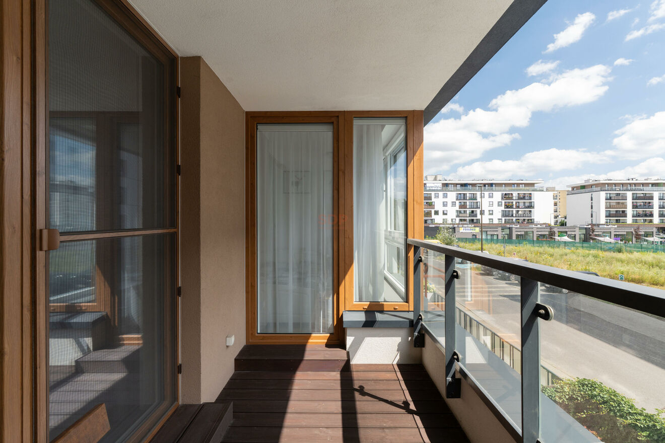 Dwupokojowe mieszkanie o powierzchni 38,31 m2 wykończone w wysokim standardzie na nowoczesnym osiedlu. Duża loggia 5,9 m z wejściem od salonu i sypialni. Doskonała lokalizacja.