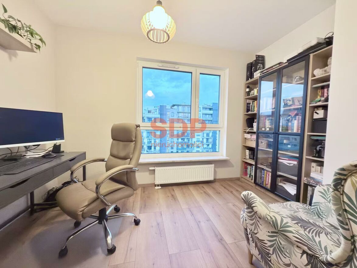 Mieszkanie składa się z salonu z aneksem kuchennym, sypialni, pokoju, łazienki z WC oraz toalety. Duży salon połączony z aneksem kuchennym, sprawia że mieszkanie jest bardzo przyjemne i przestronne. Wyspa pomiędzy salonem a aneksem kuchennym doskonale spaja tą przestrzeń i dodaje jej zarówno uroku jak i funkcjonalności. Z salonu wyjście na loggie od strony wschodniej.