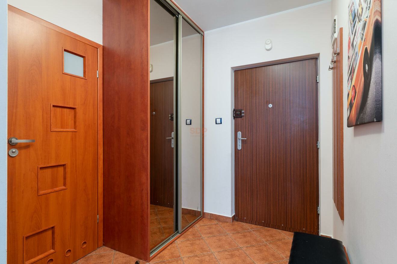 Mieszkanie znajduje się na ogrodzonym i strzeżonym osiedlu, na terenie którego mieści się plac zabaw, zadbane patio i altanka. Dookoła zapewniony jest pełen dostęp do infrastruktury codziennego życia. Niedaleko położone są liczne punkty usługowe, takie jak apteka, Żabka, piekarnia czy restauracje. W najbliższej okolicy znajdują się także większe udogodnienia: Biedronka, centrum handlowe Skorosze, market budowlany Leroy Merlin oraz centrum medyczne.