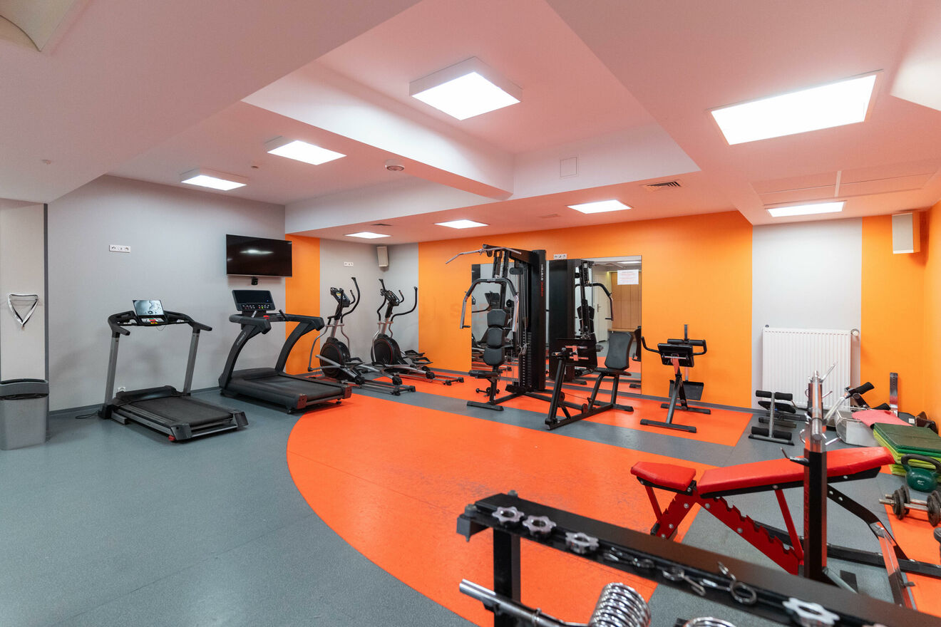 - Mieszkańcy bloku mogą korzystać z siłowni oraz sali fitness