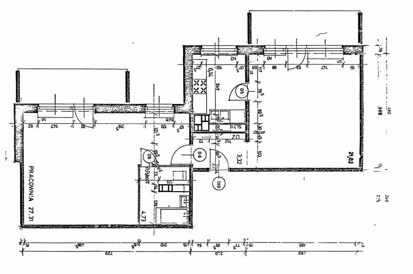 Obecny układ: 2 pokoje, oddzielna kuchnia, łazienka, korytarz.