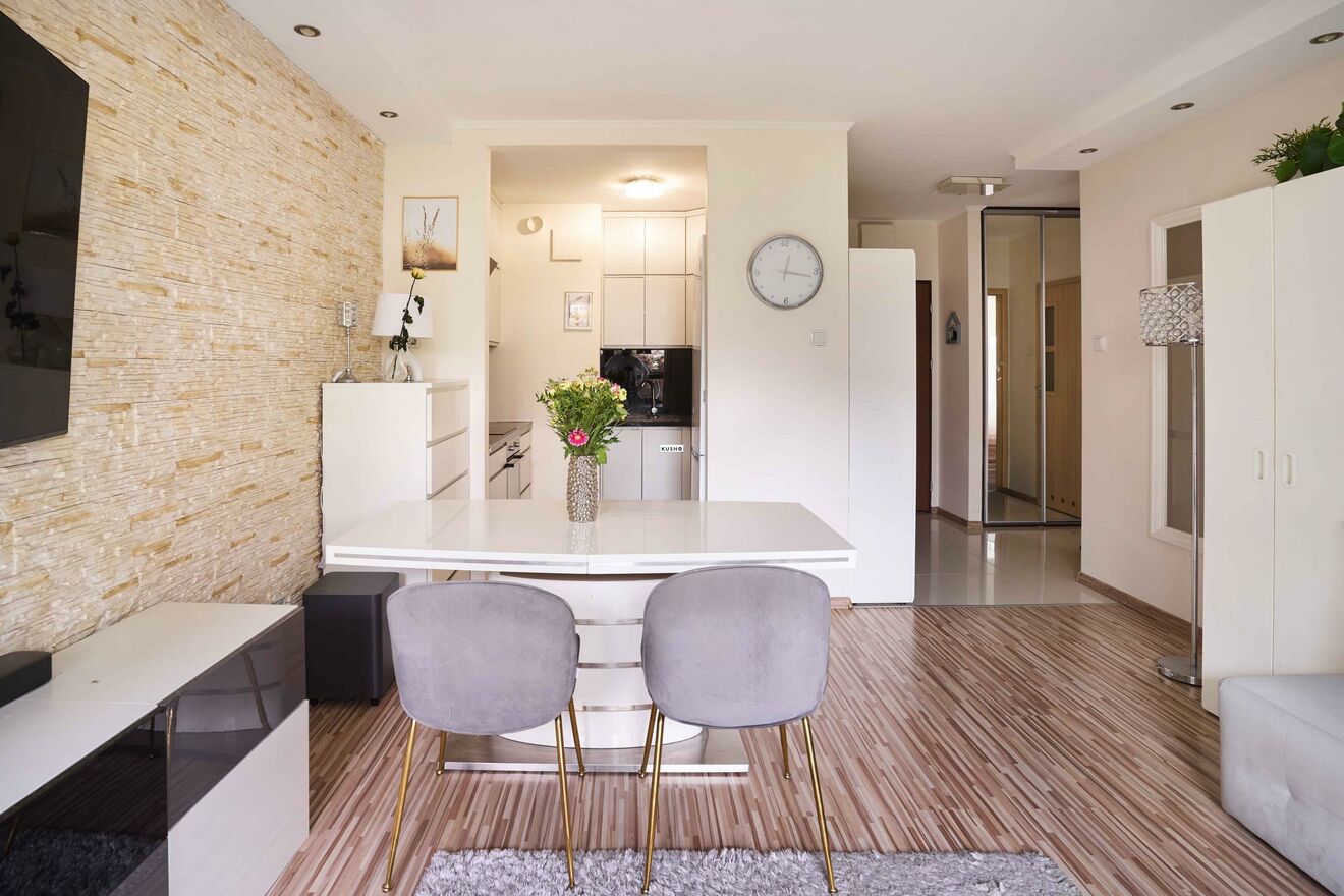 This location is the epitome of convenience: Nearby, you will find a kindergarten, private school, shops, restaurants, banks, and a post office everything you need for daily life. Fitness enthusiasts will appreciate the nearby sports complex and convenient public transportation options including a tram to Wilanów that quickly connect you to the city center.Another highlight is your neighbor, Wojtek Animator, whose boundless energy brightens the entire community.OWNERSHIPFull ownership.Monthly administrative fees are PLN 815.