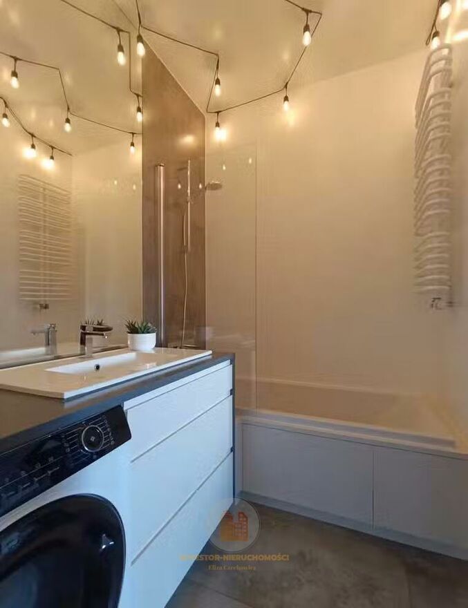 - łazienka z wanną i pralką, szafa na wymiar,