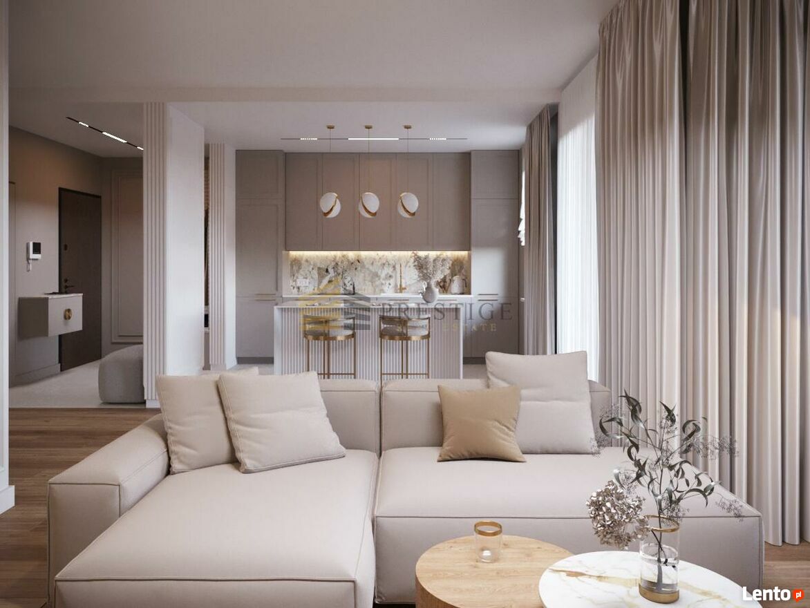- A spacious living room connected with a modern, fully equipped kitchen, where functionality and elegance dominate. The interiors have been designed with attention to every detail, using the highest quality materials.