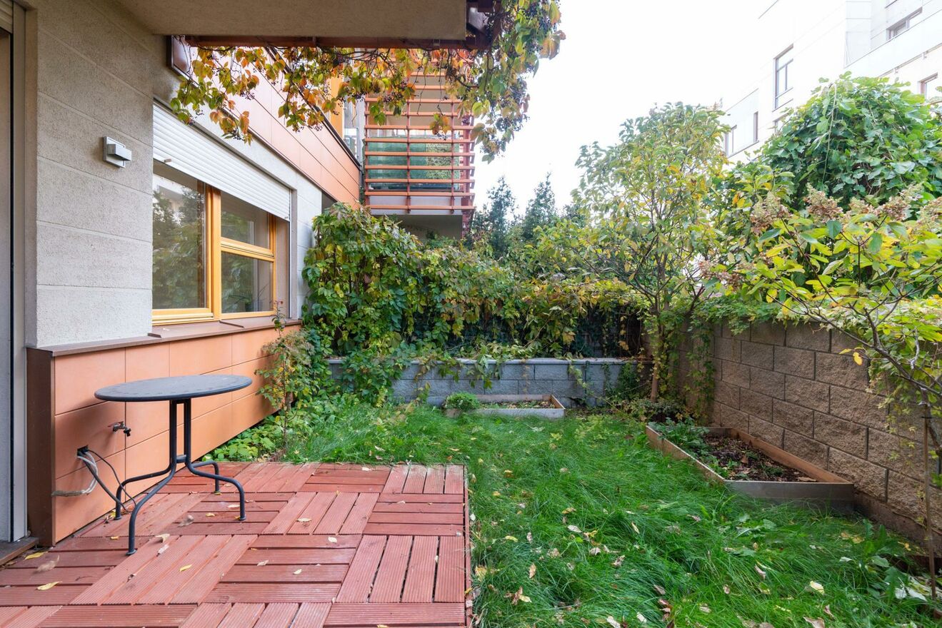 Prezentowana nieruchomość mieści się na parterze kameralnego budynku z 2008 r. na zamkniętym osiedlu na Wilanowie. Do mieszkania przynależy klimatyczny ogródek. Natomiast dla wszystkich mieszkańców jest dostępne zadbane zielone patio z placem zabaw dla najmłodszych lokatorów.