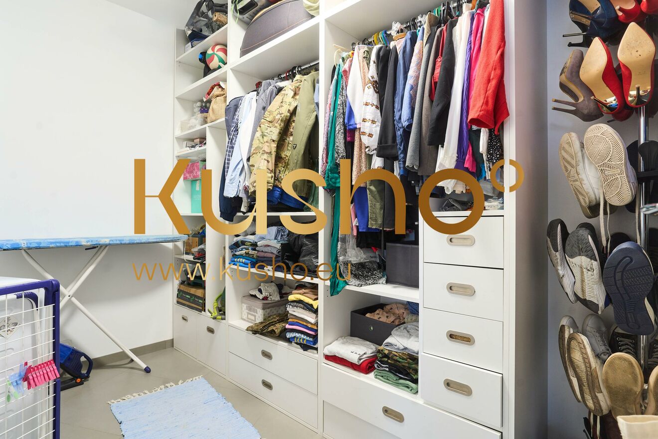 spacious walk-in wardrobe with built-in storage,