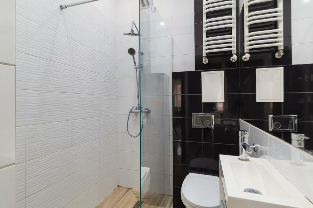 nowoczesnej łazienki z prysznicem typu walk-in,