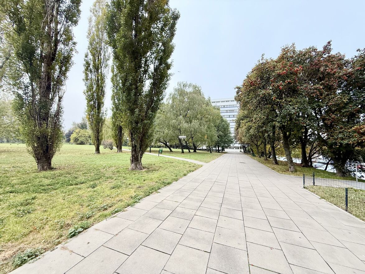 Unique location among greenery and vintage architecture. Open view over the city skyline. Solid 60s modernist structure built to last. Excellent investment potential easy to rent, timeless to own.