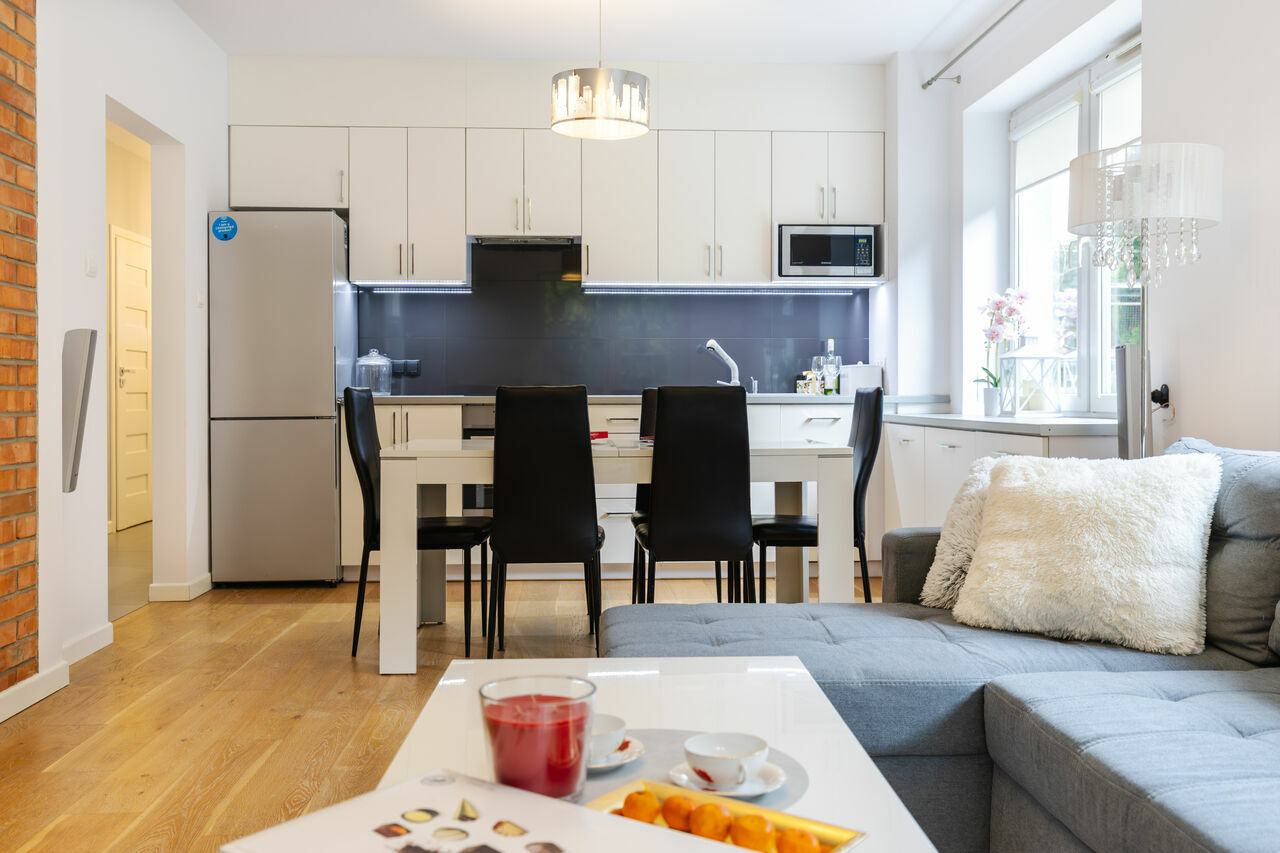 Mieszkanie składa się z salonu o pow. 21 m2, z wyjściem na taras i do ogródka o pow. ok 70 m2, połączonego z w pełni umeblowaną i wyposażoną w agd kuchnią z oknem o pow. 8 m2, trzech sypialni o pow. 12 m2, o pow. 11 m2 i o pow. 10 m2, łazienki z oknem o pow. 6,5 m2, garderoby o pow. 3 m2, wygodnego przedpokoju o pow. 12 m2 z dużą ilością pojemnych szaf.