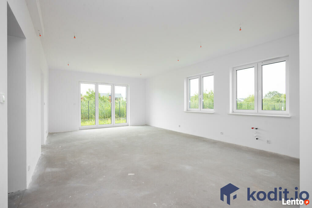 - Przestronny, ponad 38 - metrowy salon z aneksem kuchennym, wyjściem