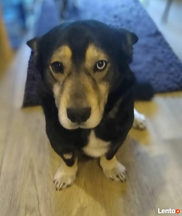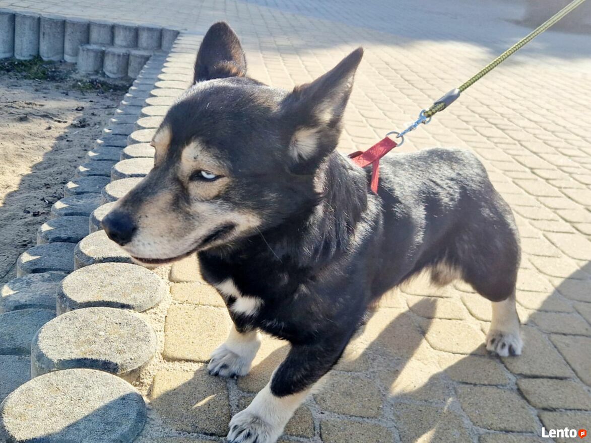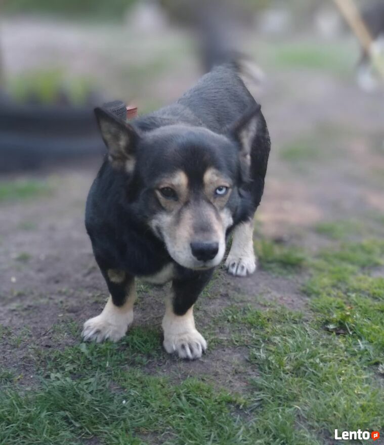 Taki fajny, oryginalny psiak do adopcji, trochę jak mix corgi z huskim.Jedno oko niebieskie, drugie piwne. Niski, ale nie drobny.