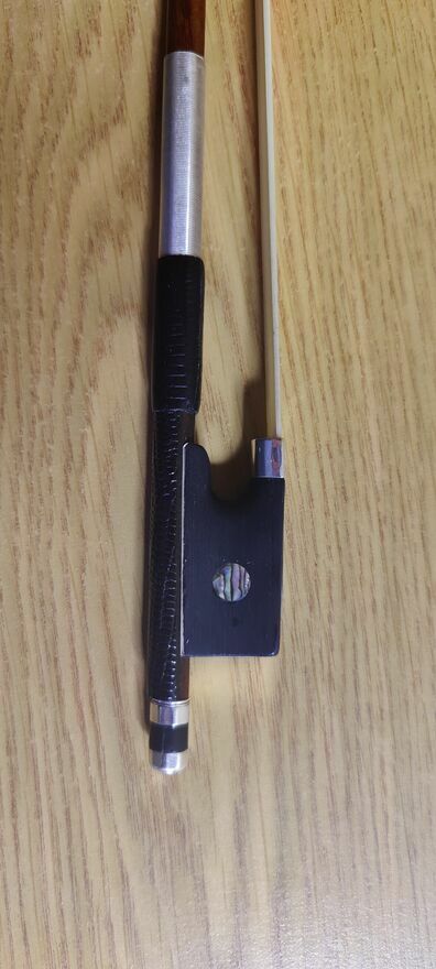 Dzień dobry!Sprzedaję gotowy do użytkowania, w pełni sprawny smyczek 4/4 z nowym włosiem, nową skórką, kostką.