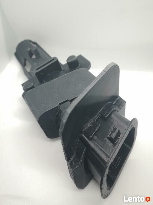Mam do sprzedania mocowanie spryskiwacza lampy przedniej do Renault Scenic III. Jest możliwość kupienia lewego lub prawego mocowania, albo kompletu na prawą i lewą stronę. Mocowanie na jedną stronę składa się z 2 elementów, koszyczka mocowanego w zderzak od zewnętrznej strony oraz dłuższego elementu znajdującego się od wewnętrznej strony zderzaka, w którym przykręcony jest spryskiwacz lampy.Części są nowe, wydrukowane na drukarce 3D. Wykonane z wytrzymałego materiału, jakim jest ABS. Jest to surowy wydruk i może się zdarzyć, że trzeba będzie doszlifować papierem ściernym miejsca styku koszyczka, czyli tej mniejszej części z tą większą w celu perfekcyjnemu dopasowaniu elementów.