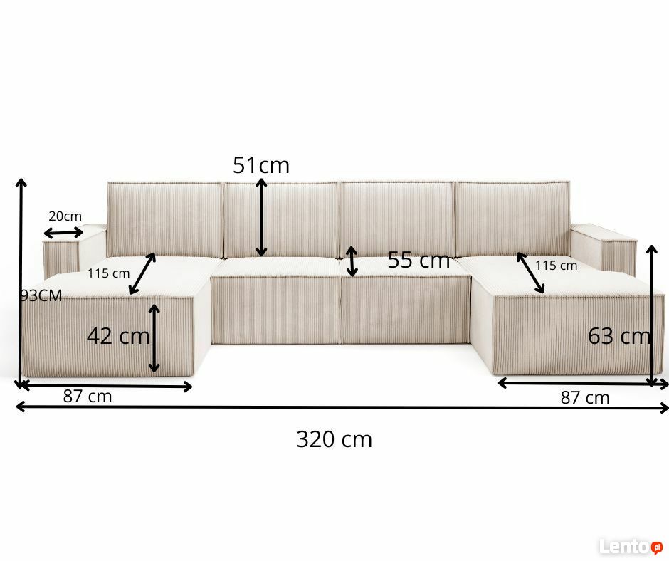 Głębokość elementów bocznych: 115 cm (siedzisko), szerokość 87 cm