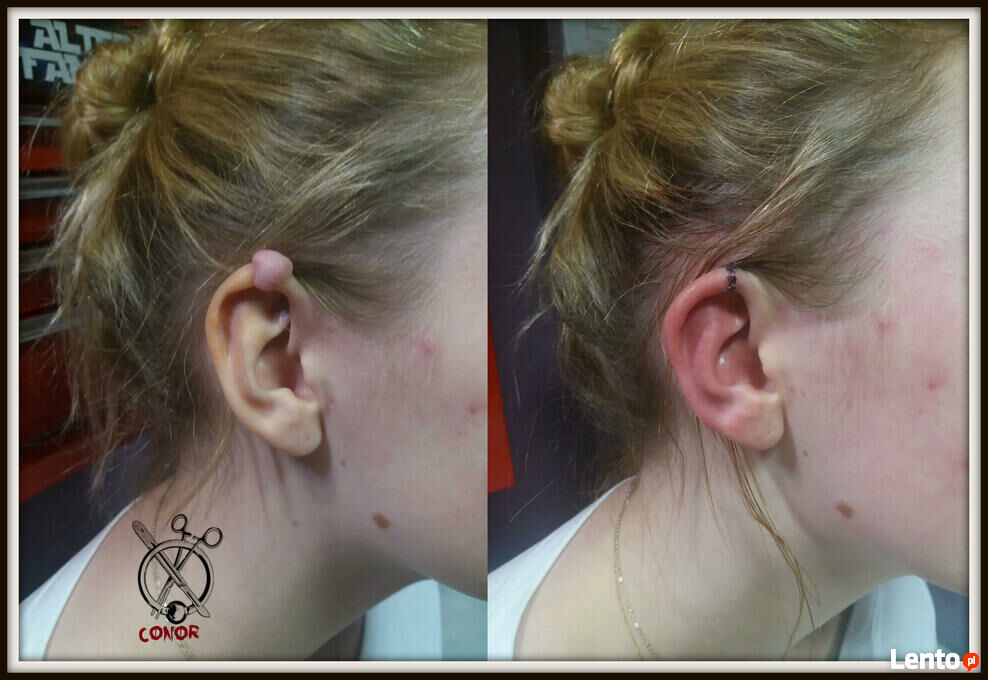 2. Rekonstrukcje uszu po tunelach, przerwanych kanalow, rekonstrukcje blizn po kolczykach.