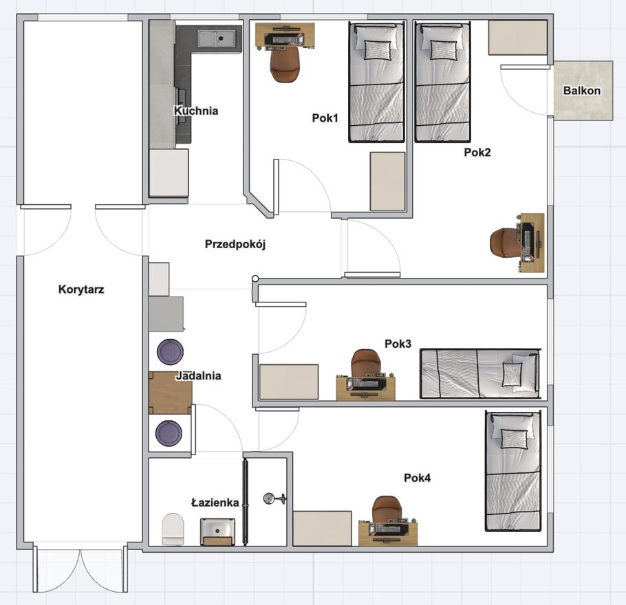 Tak — dałoby się "wycisnąć" jeszcze więcej, aranżując 5. pokój, ale byłoby to kosztem komfortu i stabilności. Tu zrobiono wybór na pewny, przewidywalny zysk.