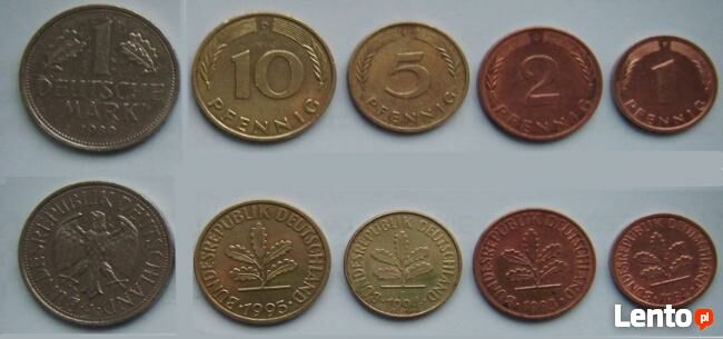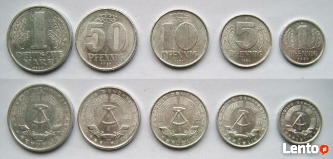 Zestaw monet niemieckich z NRD ( 1 marka, 50 pfenigów, 10 pfenigów, 5 pfenigów, 1 pfenig) i z NRF ( 1marka, 10 pfenigów, 5 pfenigów, 2 pfenigi i 1 pfenig). Cena za zestaw.Sprawdź zainteresowanie tym ogłoszeniem