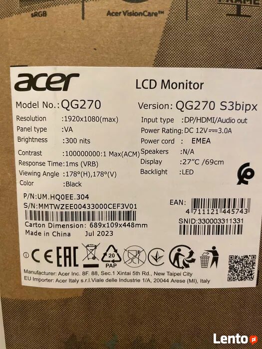 Sprzedam monitor ACER NITRO plus głośniki, wszystko jest w stanie idealnym, nie ma śladów użytkowania, sprzedaję ponieważ mam już nowy telewizor, opakowanie jest oryginalne.180hZ, Full HD,Sprawdź zainteresowanie tym ogłoszeniem