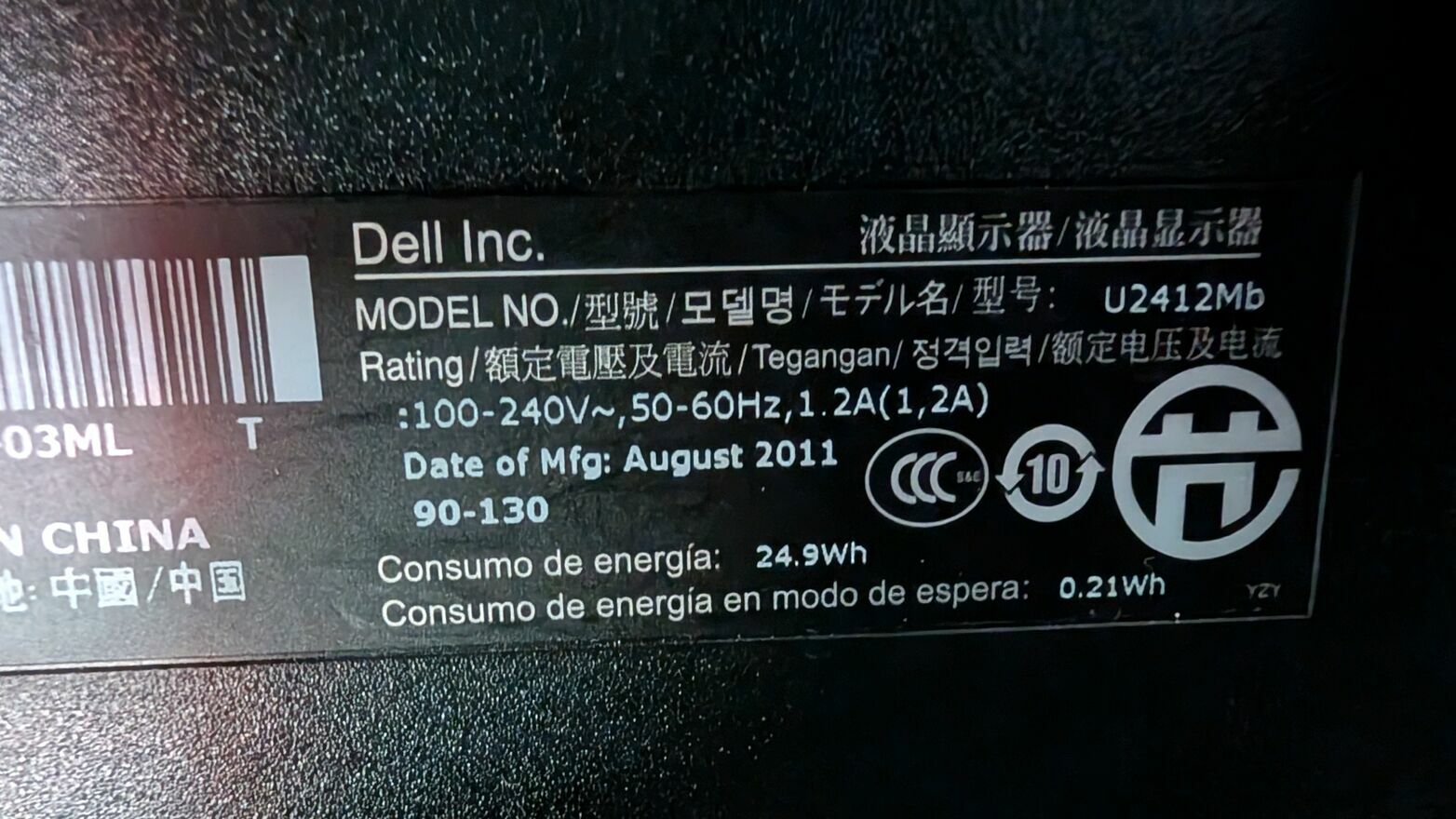 Monitor Dell U2412M z oryginalną podstawą