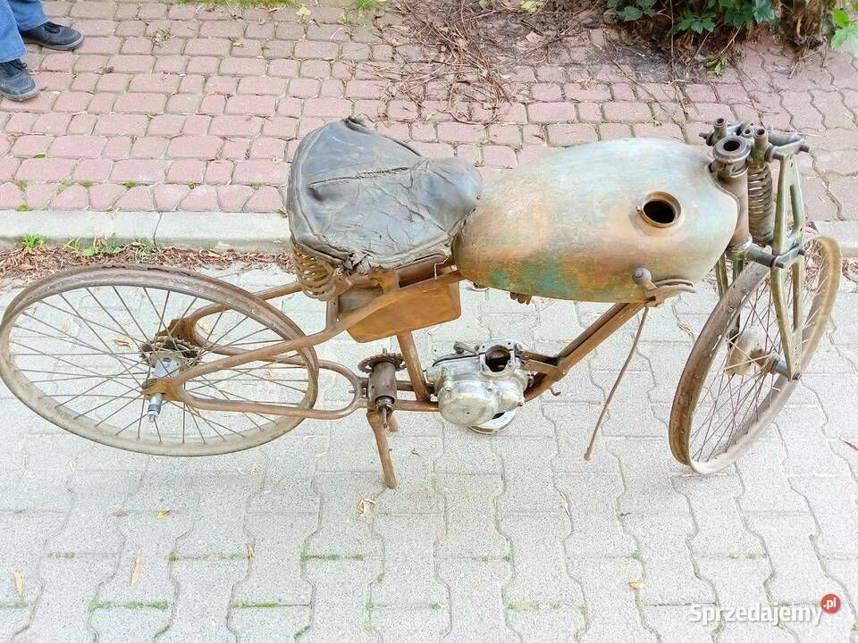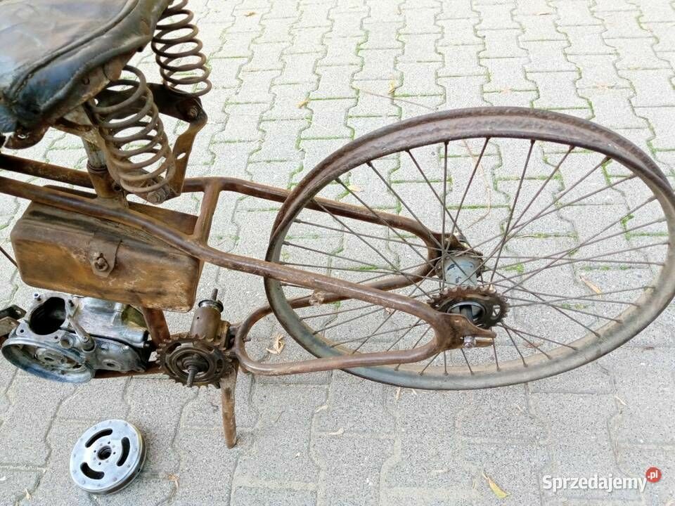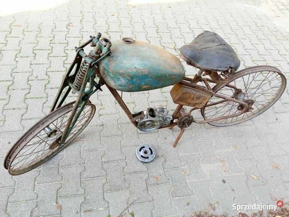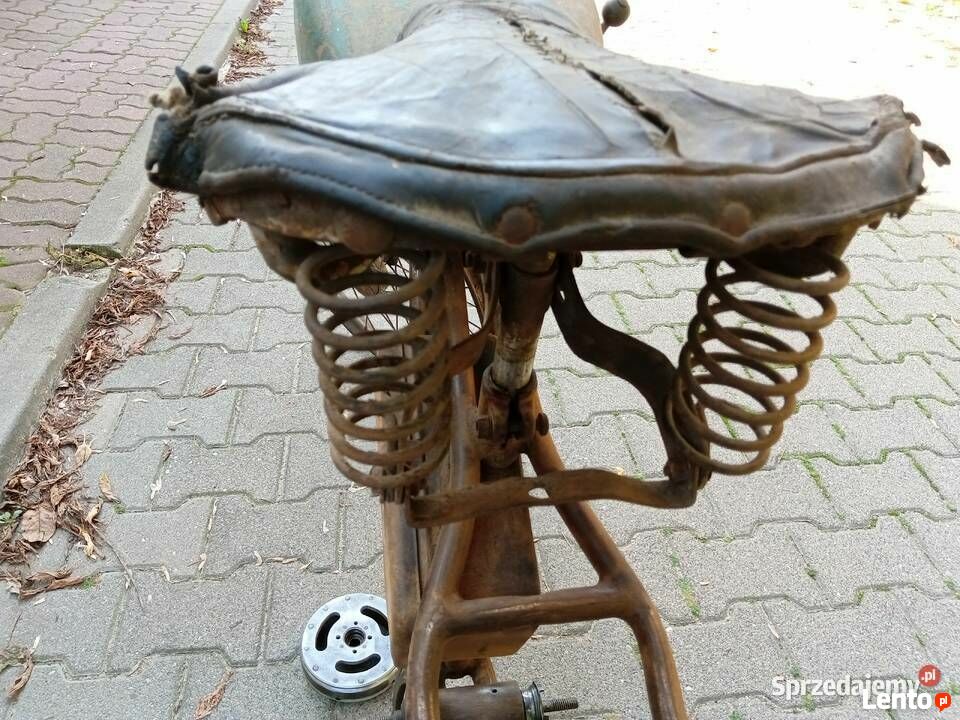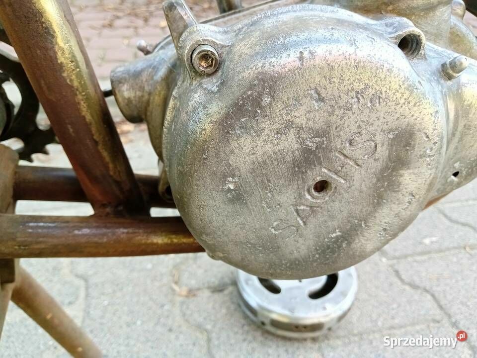 Te motocykle były wyposażane często w silniki Sachs'a w 1937r, Wiadomo tylko, że sprzęt został po 40 latach wygrzebany ze sterty różnych sprzętów i rupieci a wszystko leżało razem. Są ubytki materiału w felgach i w jednej pokrywie silnika. Rama ze skrzynką narzędziową oraz zbiornik zdrowe jak dzwon. Oferta obejmuje tylko to co jest na zdjęciach, więc proszę nie pytać o inne części. Na pokrywie silnika i 2 zębatkach są sygnatury Sachs'a. Z części silnikowych jest kpl. karter z jedną pokrywą od strony przekładni biegów, głowica i koło magnesowe. Brakuje pozostałych elementów. Gwinty w b. dobrym stanie. W kole przednim jest bęben hamulcowy ze szczękami, ale brak rozpieracza. Na bębnie sygnatura Sachs'a. Ośki w kołach nie od tego motocykla. Zbiornik paliwa z orginalnym kranikiem. Brak jest dokumentów na motorower, ale już w tym Roku podobno rejestracja takiego ma być uproszczona. Jest to raczej unikat klasy "0", gdyż produkcja tych 100tek była krótka. Z ostatnich uzyskanych informacji od kolekcjonerów wynika, że to przedostatnia sztuka. Nie wystawiam faktur, to sprzątanie garażu. Odpowiem na pytania i zrobię dodatkowe zdjęcia w razie potrzeby. Gorąco polecam. ID: 865 - pokaż numer telefonu -