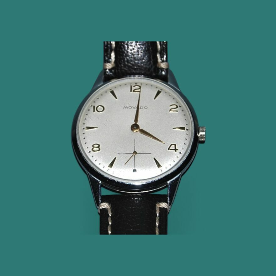 Dzień dobry.Sprzedam szwajcarski zegarek męski marki Movado z lat 50 XX w. Zegarek po renowacji, skórzany stylowy pasek w czarnym kolorze.
