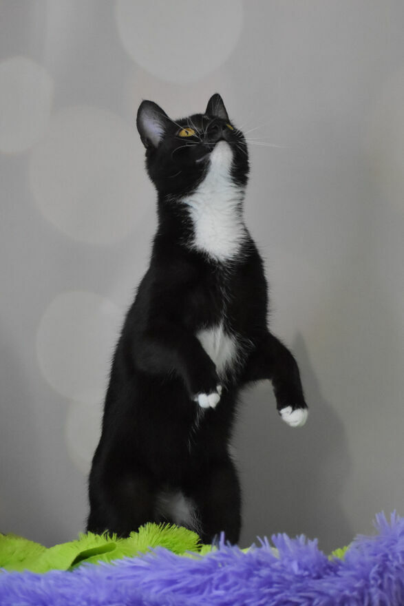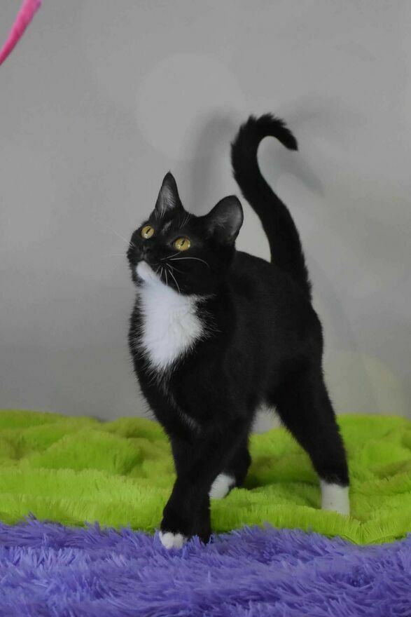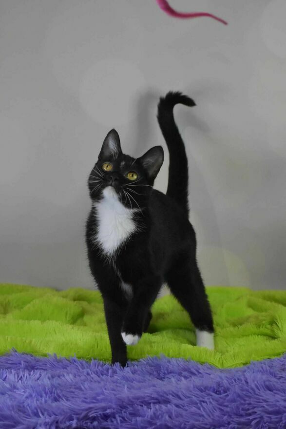 Mrówczynka to śliczna kicia o klasycznej, pingwiniej urodzie. Bardzo lubi wszelkie kocie harce - biega za piłeczką czy wędką, uprawia zapasy z kolegami.Na dodatek jest bardzo miła. Kicia nie tylko lubi kontakt z człowiekiem – ona go wręcz WYMAGA. Jak jej nie pogłaszczesz odpowiednio szybko to sama na ciebie wejdzie. Mrówczynka to kot – przylepa. Niestraszne jej nawet obce twarze ;)