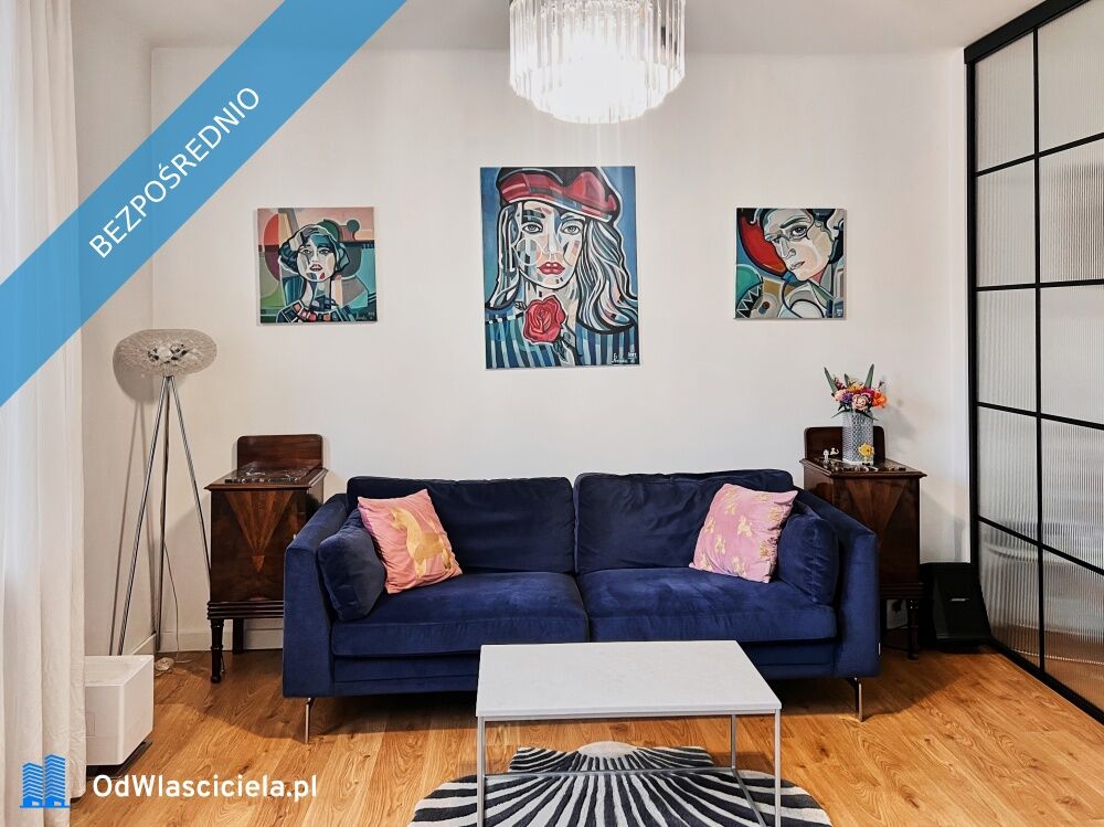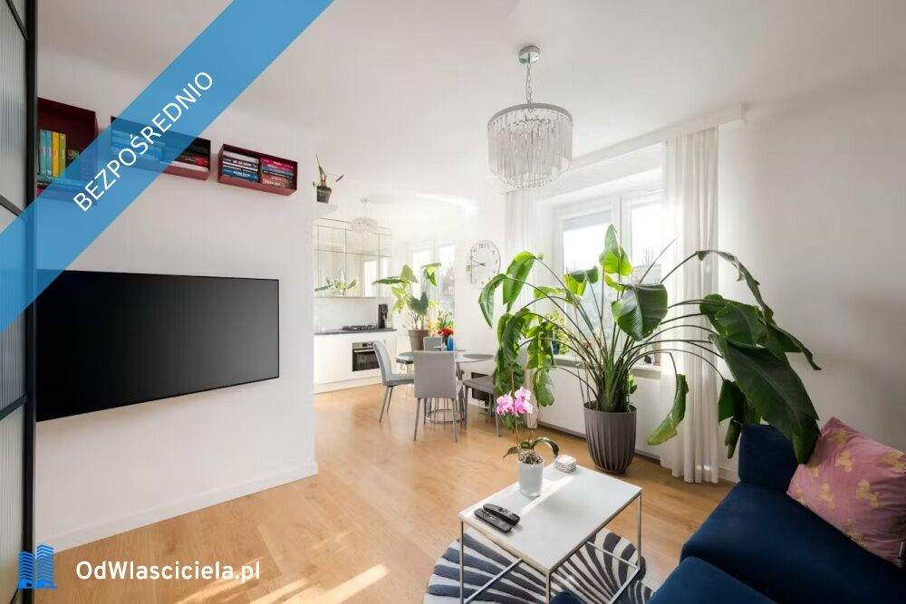 Mieszkanie ma niecałe 36m2 i należy do niego duża piwnica. Znajduje się na 2p. pięknej kamienicy z lat 50, z półokrągłym przejściem. Okna wychodzą na południe, na zieleń przy ulicy Nowolipie. Szklana ściana wydziela aneks sypialniany. Telewizor wisi na specjalnym wciągniku, dzięki któremu można oglądać tv komfortowo zarówno w salonie jak i w sypialni na dużym łóżku (160x200).