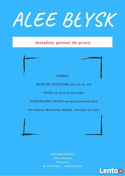Swoją pracę wykonujemy profesjonalnie i rzetelnie. Żadnych smug czy zacieków.