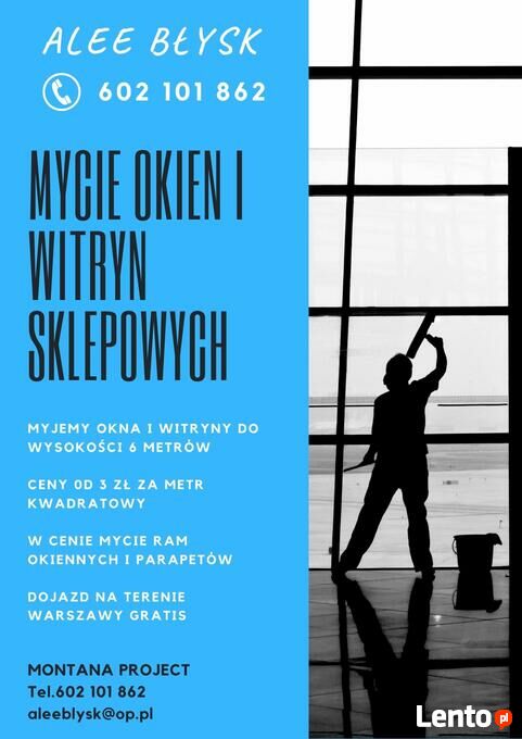 Myjemy okna i witryny sklepowe.Myjemy witryny w sklepach oraz wszelkich lokalach usługowych.