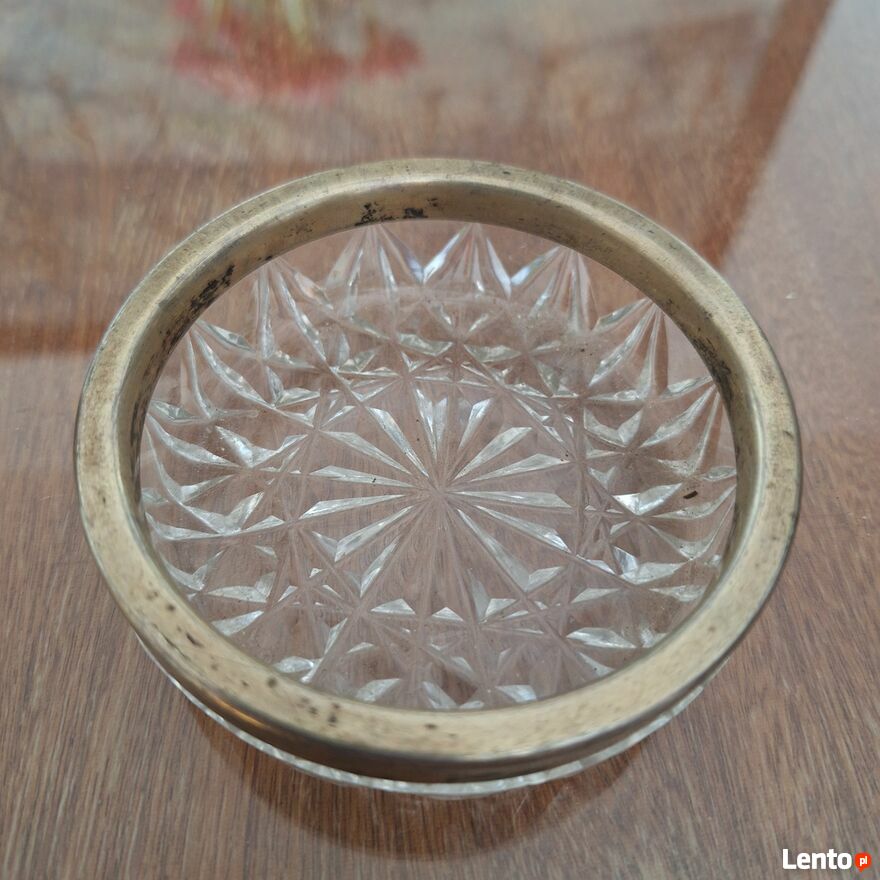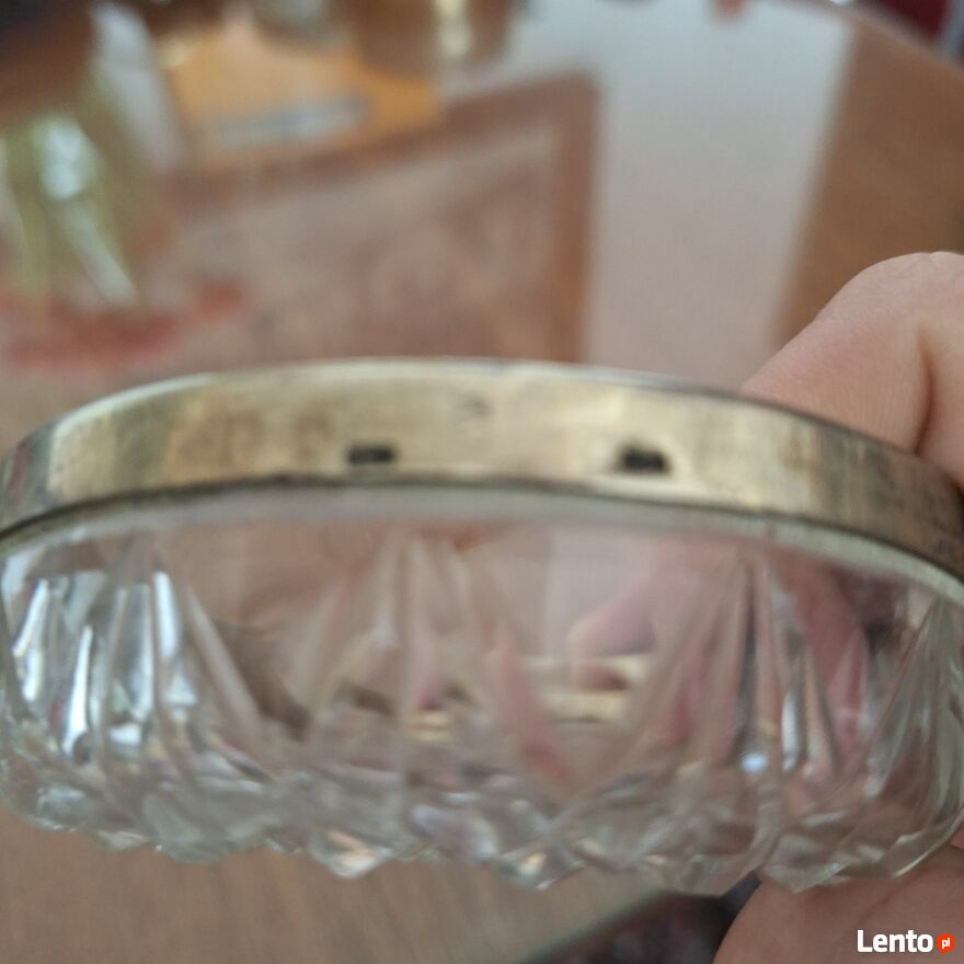 Naczynko kryształowe ze srebrną pozłacaną opaską