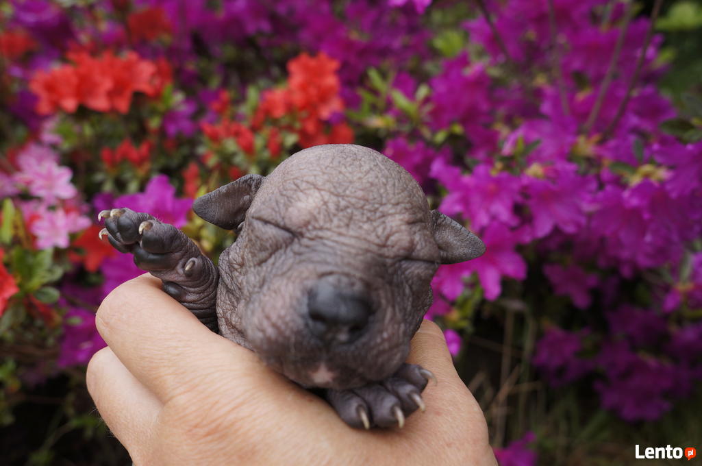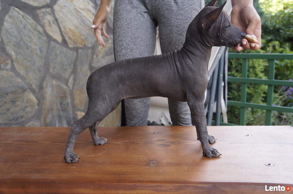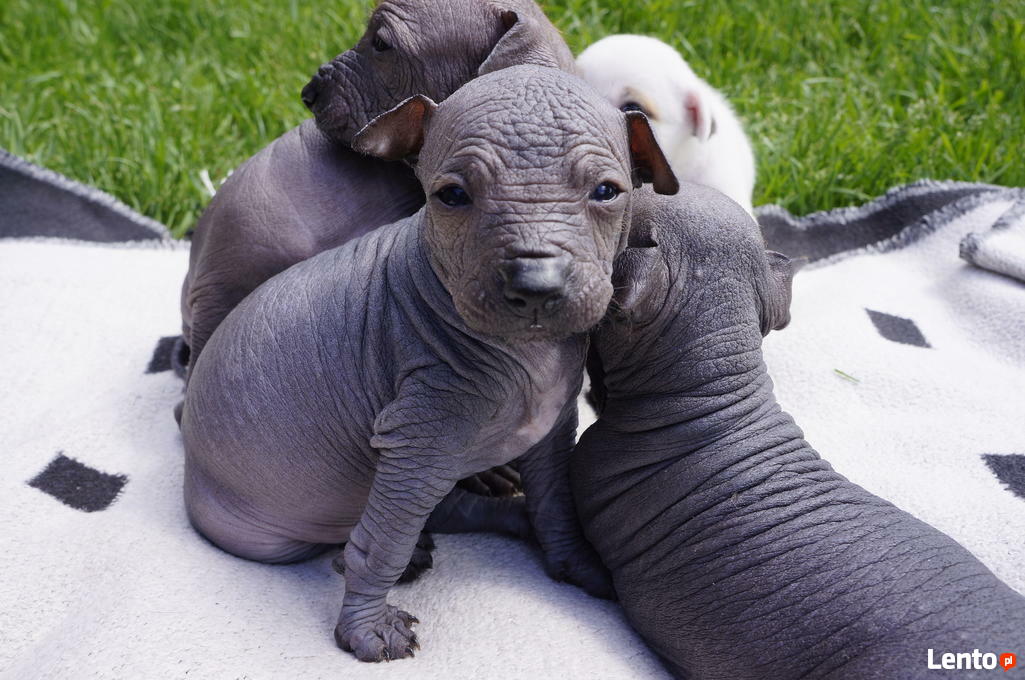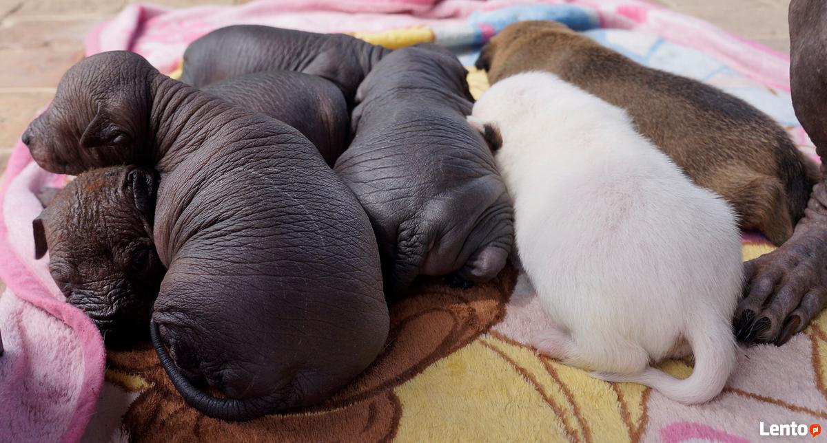 NAGI PIES PERUWIAŃSKI - szczenięta NAGIE tj. naturalnie bezwłose.Szczenięta wydawane po 2 szczepieniach i 3 odrobaczeniach adekwatnie do wieku , wyposażone w książeczkę zdrowia i metrykę ( rodowód ZKwP - FCI ) oraz wyprawkę , zachipowane.